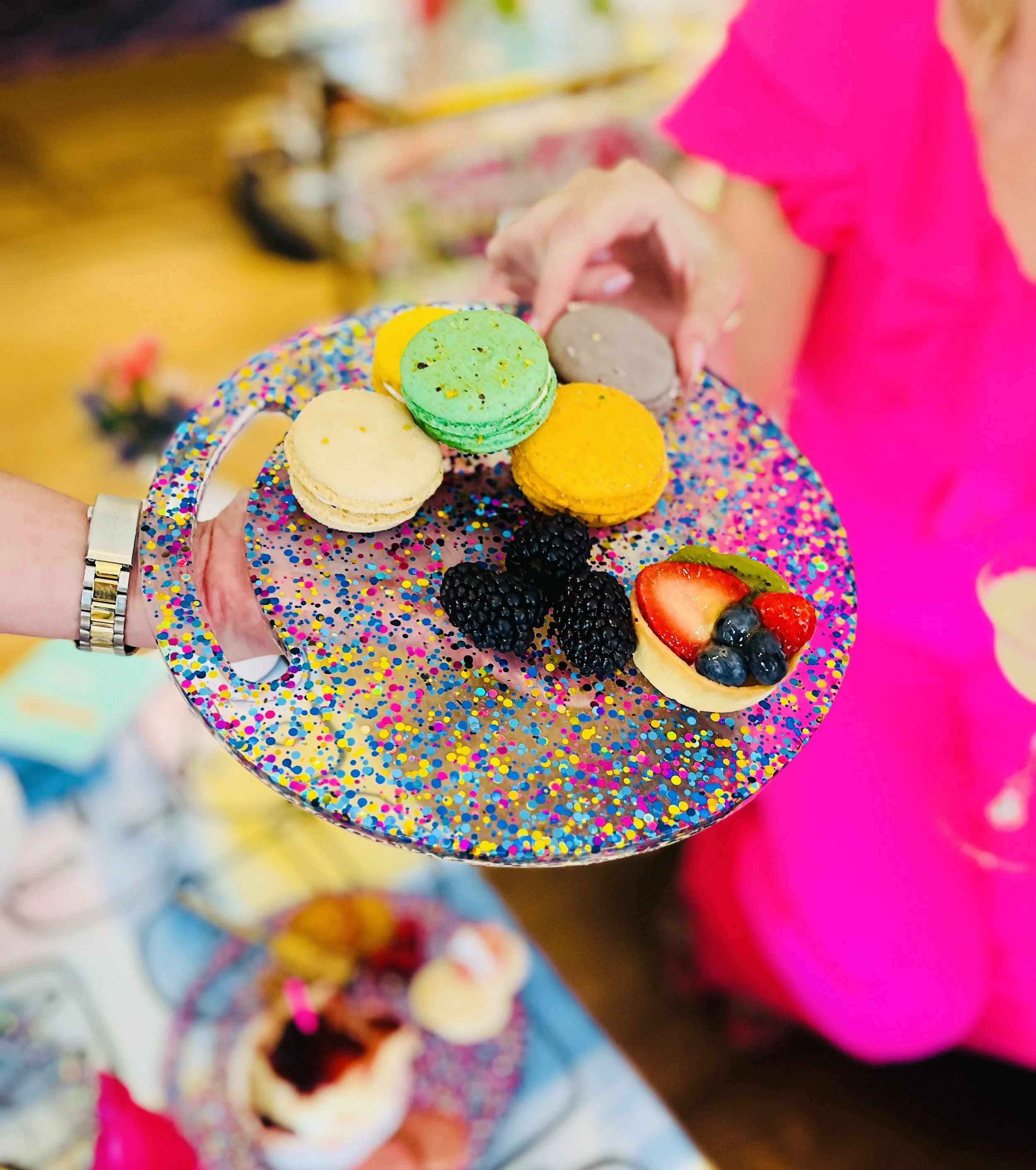 My journey into epoxy began completely by accident, but quickly turned into an obsession. Inspired by creativity, encouraged by friends and family, and driven by a love for gathering, I am excited to continue designing pieces that bring beauty, joy, and a little sparkle to the table.